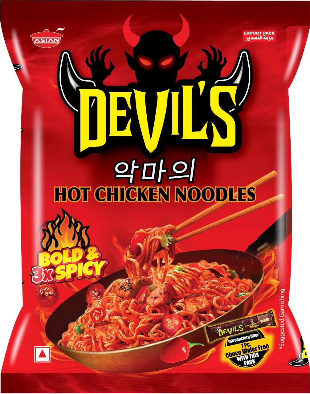 डेभिल्स नुडल्सको प्रत्येक प्याकेट भित्र चोकोवेफर राखिएको छ । उपभोक्ताले पिरो स्वादमा डेभिल्स नुडल्स खाइसकेपछि लगत्तै चोकोवेफर चक्लेटको गुलियो स्वाद लिन पाउने छन् । कम्पनीले आक्रमक रुपमा डेभिल्स नुडल्सको प्रचार प्रसार गरिरहेका छन् ।