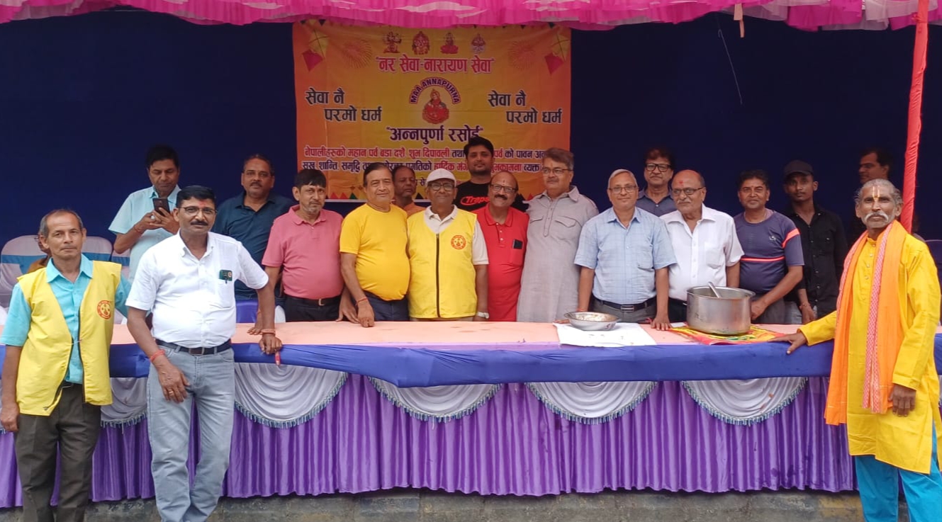 ‘नर सेवा-नारायण सेवा’ का पदाधिकारी, सदस्य र शुभचिन्तकहरूको सहयोगमा बिहीबार विजया दशमीको मेला हेर्न विराटनगर आएका ४ हजार ५ सय भन्दा बढी सर्वसाधारणहरूलाई प्रसादको रूपमा पुरी, तरकारी र हलुवा वितरण गरेका थिए ।