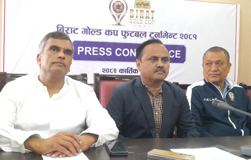 नेपाल उद्योग परिसंघ कोशी प्रदेश समितिका अध्यक्ष एवं संविधान सभा सदस्य पवन सारडा, मोरङ उद्योग व्यापार संघका अध्यक्ष अनुपम राठी, नेपाल उद्योग परिसंघ कोशी प्रदेश समितिका वरिष्ठ उपाध्यक्ष एवं मोरङ उद्योग व्यापार संघका पूर्व अध्यक्ष प्रकाश मुन्दडा पत्रकार सम्मेलनमा उपस्थित थिए । विराट गोल्ड कप फुटबल ट्रष्ट विराटनगरका अध्यक्ष किशोरबहादुर शाहीले आगामी प्रतियोगिता बारे १५ दिन भित्रमा ट्रष्टको धारणा सार्वजनिक गर्ने बताए ।