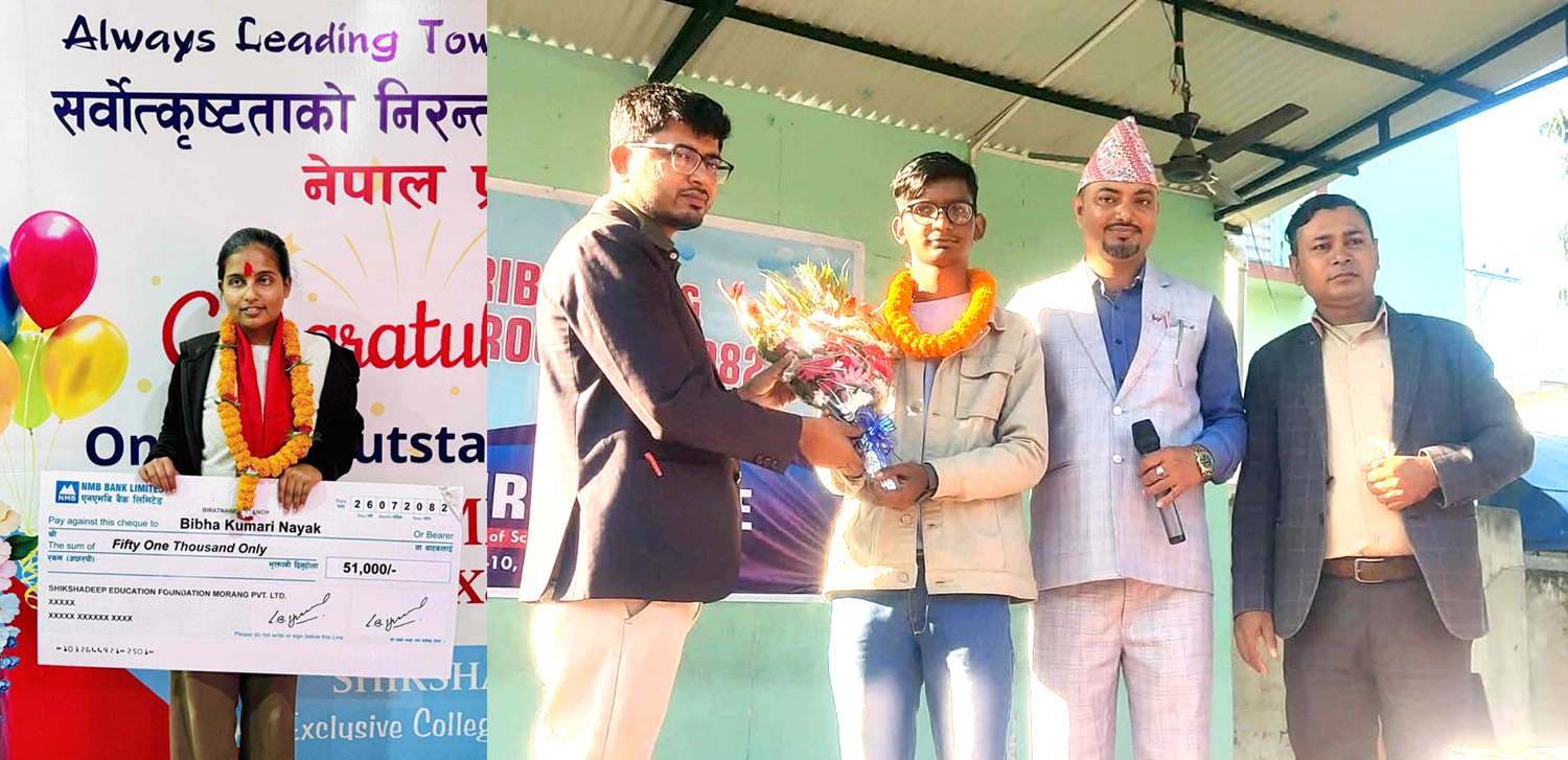 कान्तिपुर कलेज, ग्रिनल्याण र शिक्षादिप कलेजलाई पछाडी छोड्दै राशी रकम वृद्धि गर्दै १ लाख १ हजार रुपैयाँले विद्यार्थीलाई पुरस्कृत गरेका छन् । विराटनगरको शिक्षादिप कलेजले २०८२ सालको एम.बि.बि.एस.परीक्षामा छात्रा तर्फ नेपाल प्रथमको दाबी गरेका छन् । शिक्षादिपमा अध्ययन गरेका बिभा नायकले एम.बि.बि.एस. परीक्षामा छात्रा तर्फ नेपाल प्रथमको दाबी गरेकी छिन् ।
