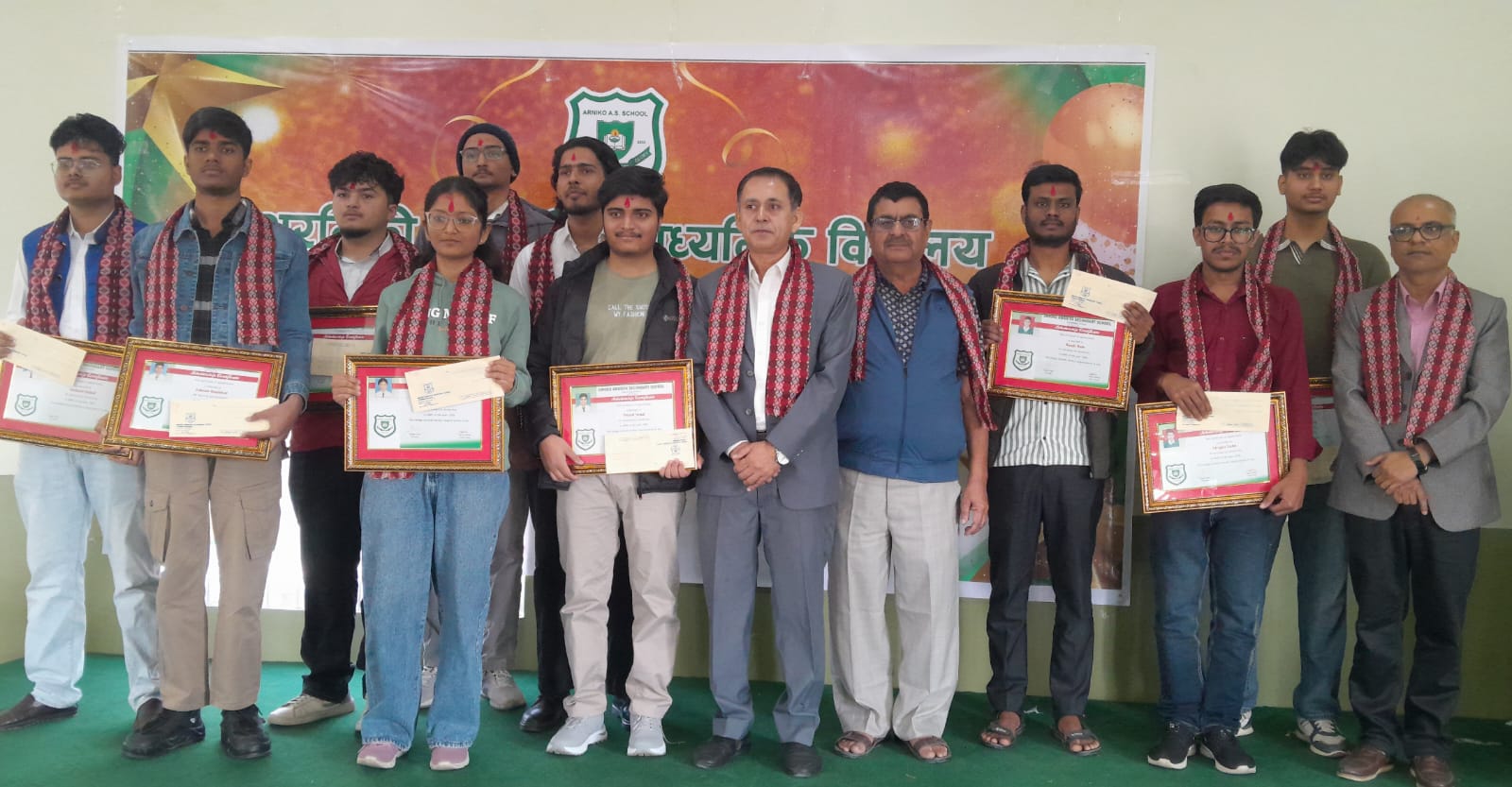अरनिको कलेजले आयोजना गरेको कार्यक्रममा कलेजका अध्यक्ष लक्ष्मीप्रसाद अधिकारी, प्रिन्सिपल राजेश कार्की, कोअडिनेटर विकास खनाल, सञ्चालक भरतराज दाहाल, डा. भविन्द्र निरौला, निलम अधिकारी र शैलेश झाले एम.बि.बि.एस. तर्फको प्रवेश परीक्षामा पूर्ण छात्रवृत्तिमा नाम निकाल्न सफल भएका विद्यार्थी ओपेन्द्रकुमार यादव, शुभम अगरिया, दिक्षित भट्टराई, रोहित राम, लोकश रौनियार, सुशान्त दाहाल, पियुष नेपाल, संस्कृति रोक्का, अर्पना चौधरी, रिषभ सोनी र निराजन यादवलाई खादा माला र नगद सहित प्रमाण पत्रले सम्मान गरे ।