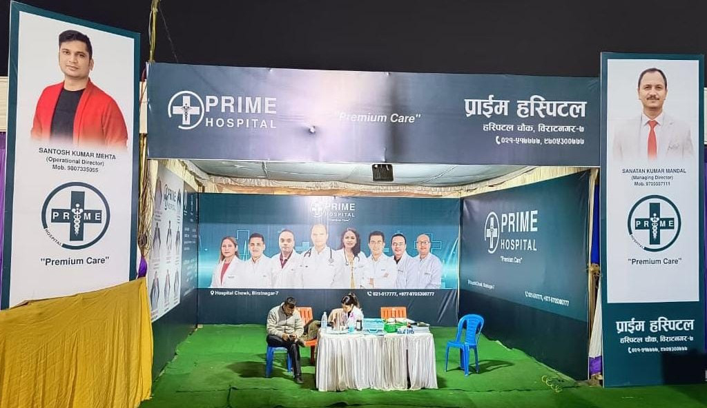 विराटनगरको प्राईम अस्पतालले विराट ट्रेड एक्स्पोमा स्टल राखेर एक्स्पो अवलोकन गर्न आउने सर्वसाधारणलाई निःशुल्क रूपमा स्वास्थ्य परीक्षण गरिरहेका छन् ।