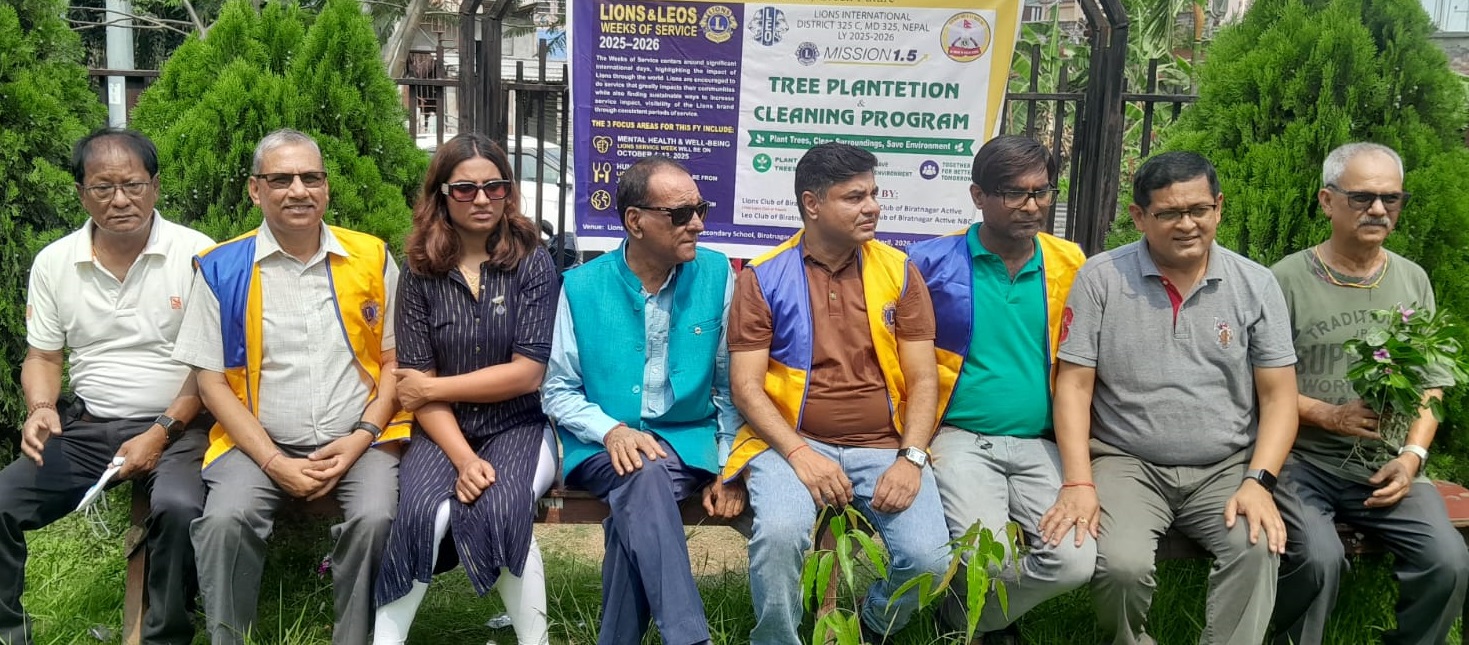 लायन्स क्लब अफ विराटनगर, लायन्स क्लब अफ विराटनगर (एक्टिव), लियो क्लब अफ विराटनगर र लियो क्लब अफ विराटनगर (एक्टिव एन.बी.सी.) ले संयुक्त रूपमा आयोजना गरेको वातावरण सम्बन्धी कार्यक्रममा लायन्स वाटिकाको सरसफाइ गर्दै विभिन्न जातको नयाँ बिरुवा वृक्षारोपण गरेका थिए ।